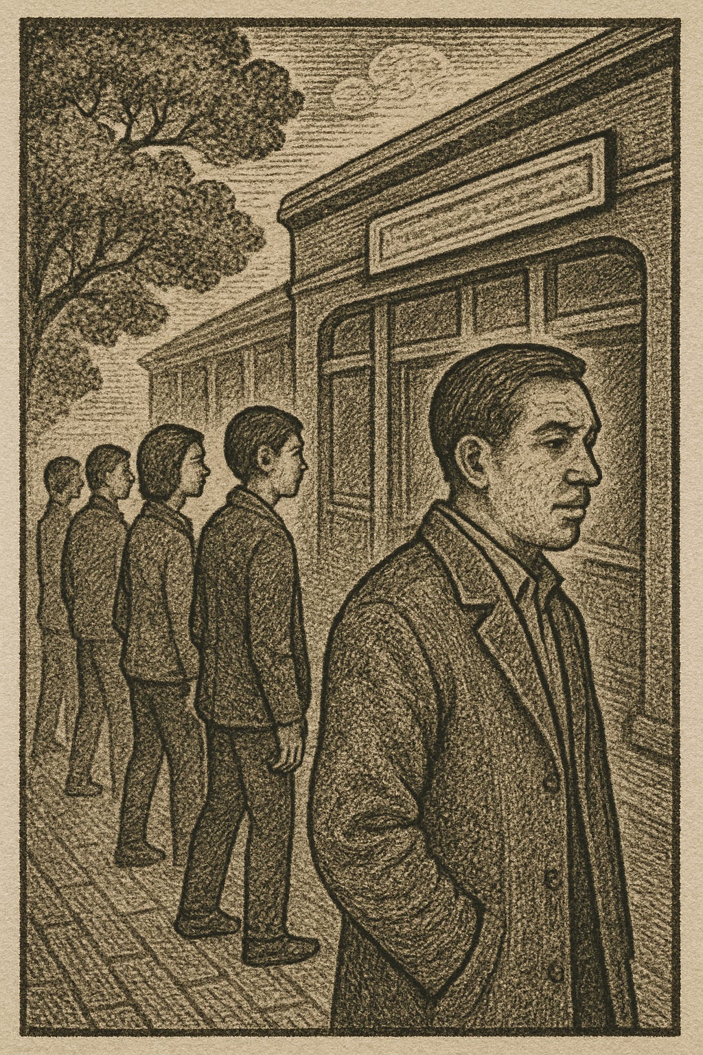 Nosotros hablamos con otras personas mientras hacemos la cola.